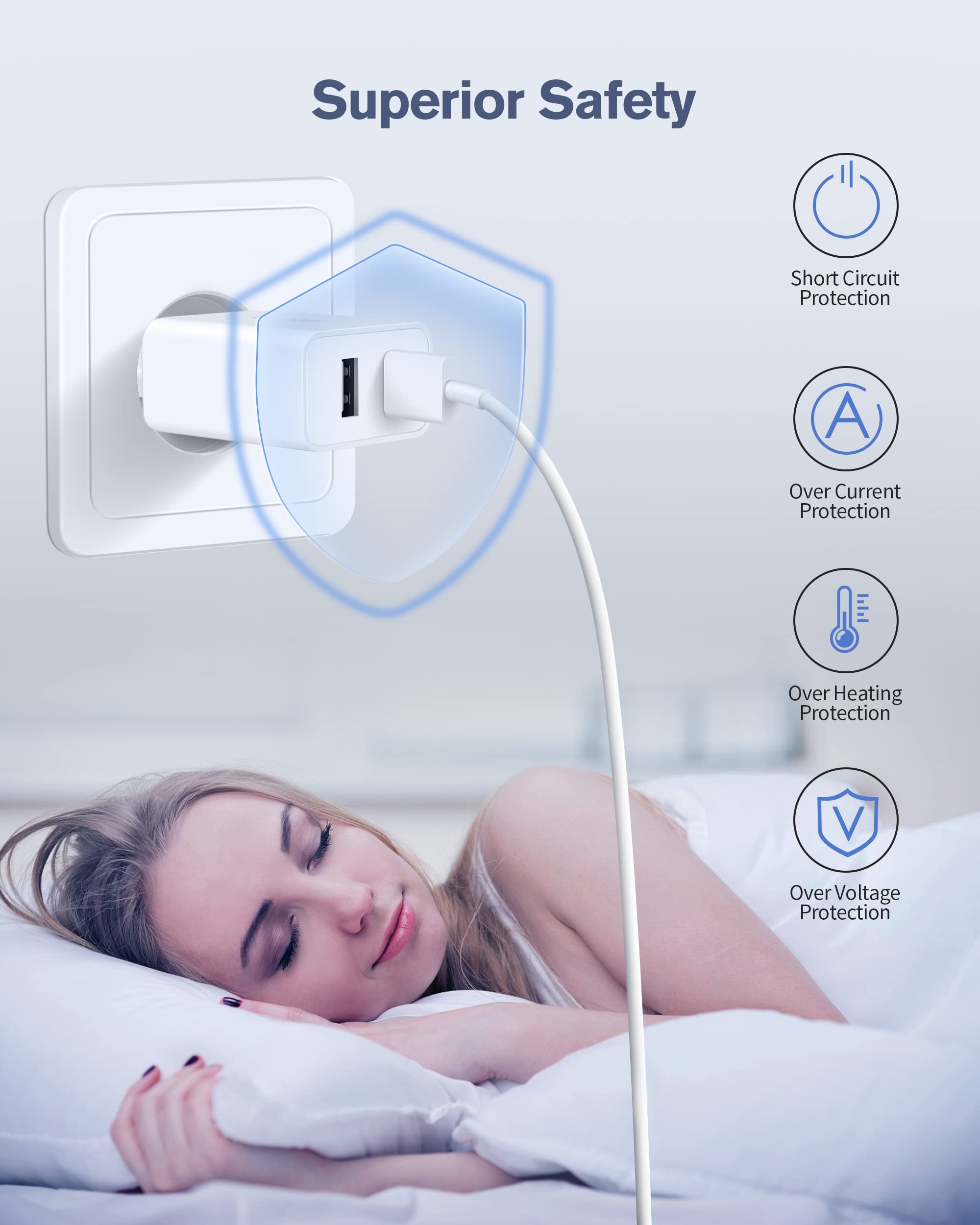 [Canada to Europe Travel Plug Adapter] Compatible with most European countries such as Austria, Belgium, Croatia, Denmark, Finland, France, Germany, Spain, Turkey, Iceland, Italy, Israel, Switzerland, Amsterdam. More country list can be checked in description. ( NOTE: NOT WORK in UK/Ireland/Scotland) [Dual Port EU Power Adapter] The European plug adapter charger block with total current output: 5V/2.1A and input: 100-240V. Dual USB port enables you to charge 2 devices simultaneously at high speed, make your travel convenient and time-saving [Ideal for Travel] Europe travel adapter compatible with iPhone 13/13 Mini/13 Pro Max/12/12 Pro Max/11/XS/XR/X/SE/8/7/6 Plus, iPad. The European usb wall charger plug also works for Samsung Galaxy S22/S21/S20/S10/Note 20/10, Android Phones and more [Compact & Safe] EU travel charger is designed compact and lightweight, easy to carry and travel-friendly, saving suitcase space. Built-in intelligent chip will protect your devices from over-heating, short-circuiting, and over-charging [What You Get] 2-Pack 2.1A European Travel Plug Adapter, 24h/7d friendly customer service