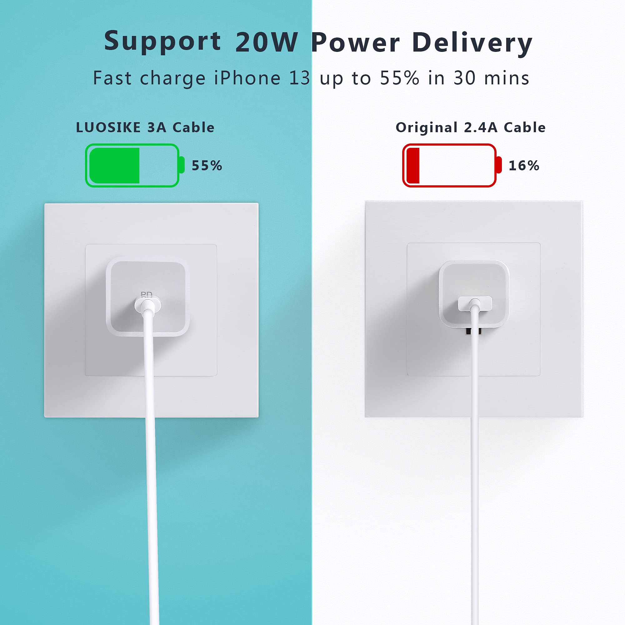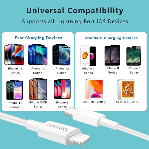 【3X Fast Charging】Fast Charge your iPhone 14 / 13 and iPhone 8 later models 3X Faster than ordinary 5W charger. (Note: You need a Power Delivery wall charger to achieve Fast Charging. This item is not include any wall charger) 【Compatibility List】 Fast Charging for iPhone 14 / 14 Plus / 13 / 12 / 11 / Pro Max / Mini, XS XR X 8 ,Airpods Pro, Also supports the standard charge (5V/2.4A max) for iPhone 7 / 6 / 5 / Plus / SE, iPad, iPods. 【MFi Certified Cord】 The 10 Foot USB C to Lightning Cable is certified by MFi, which Perfectly compatible with all lightning devices, and provide full speed charging and transmission function. 【10FT Long Length】with the 10-Feet Extra Long USB C to Lightning Cable, you can charge and play your device around your room. 【Package List】 2-Pieces USB-C to Lightning Cable (10 FT), Friendly and Quick after-sales service.