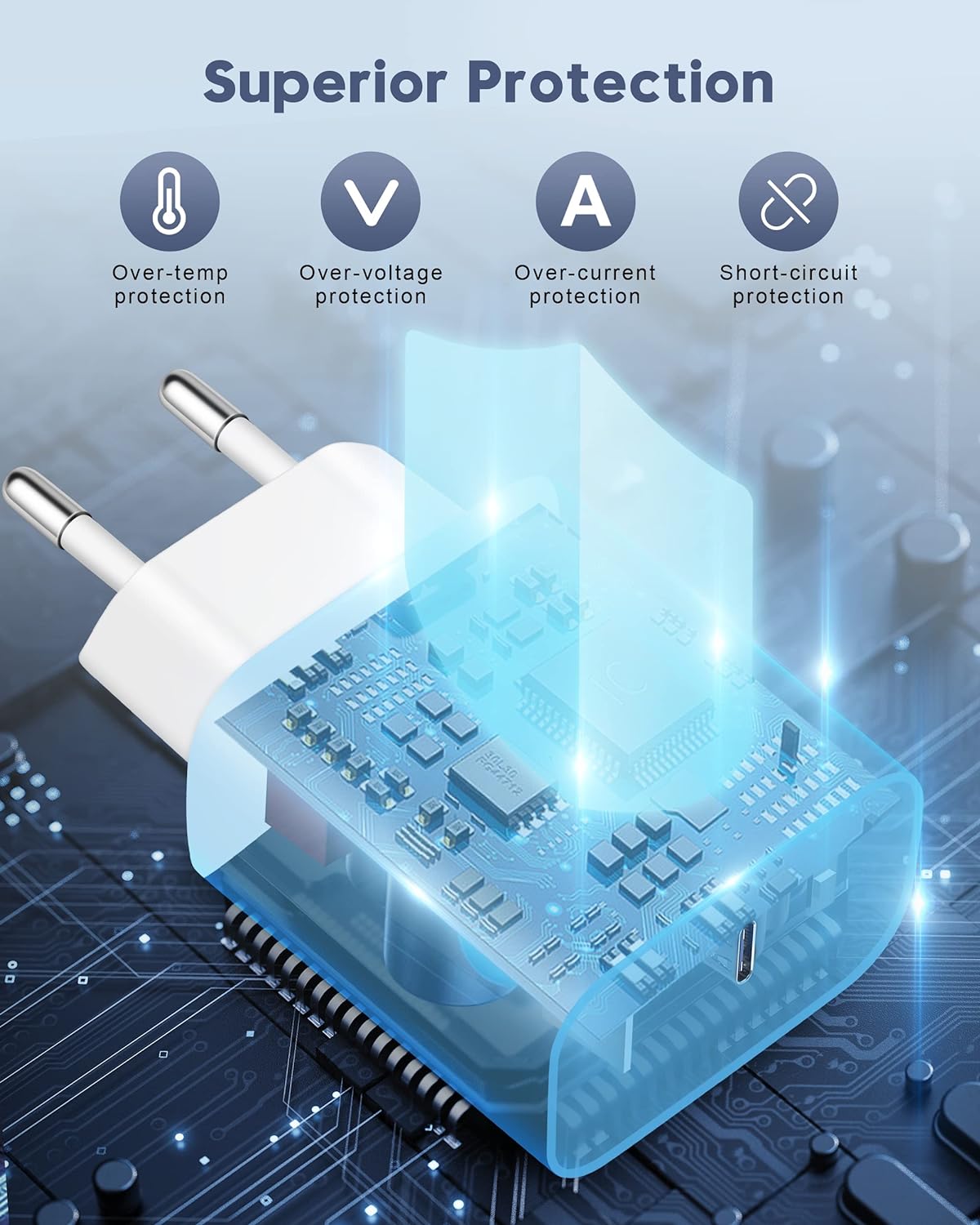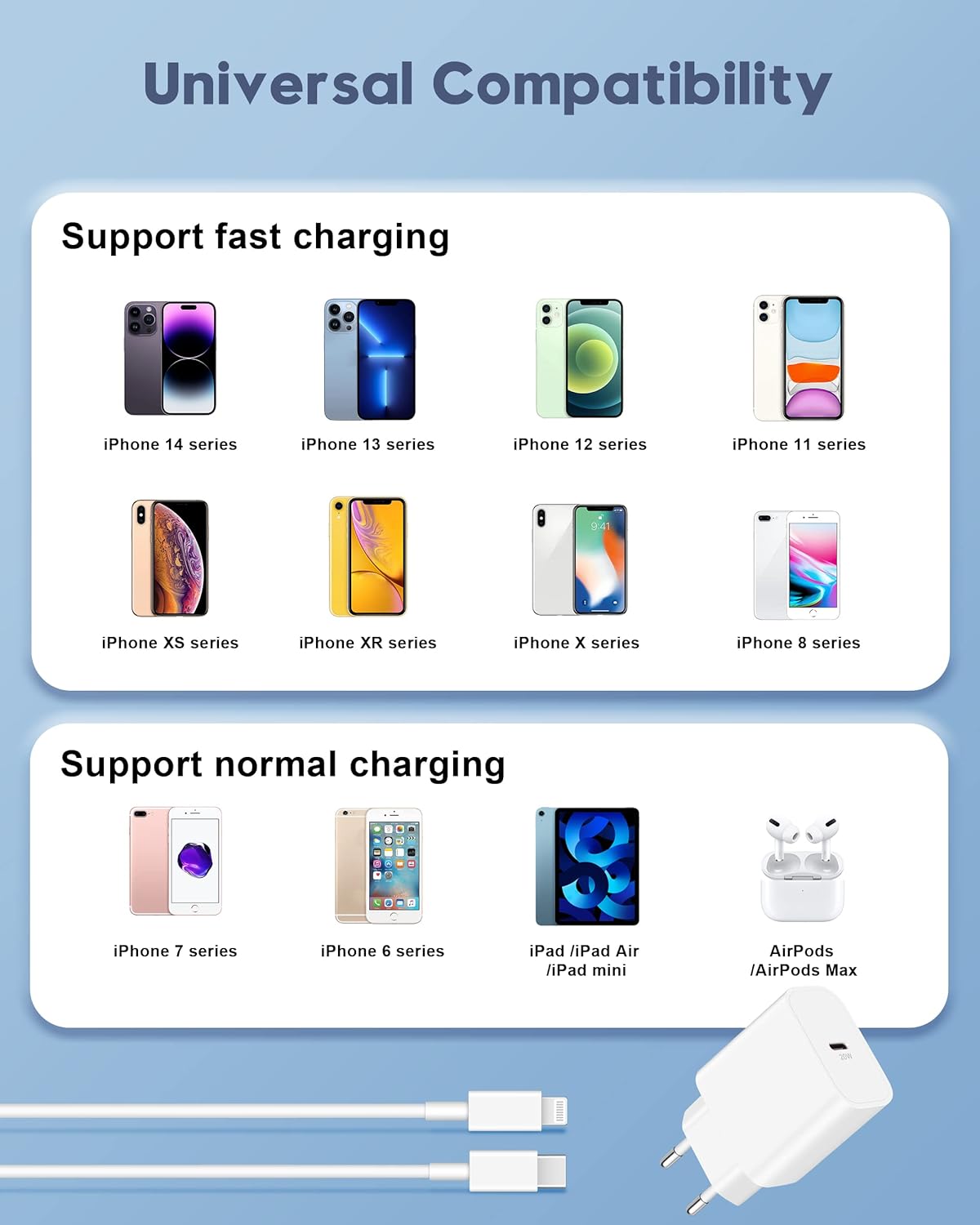 Model Number: CA-43T Manufacturer: Heyuan Chenchuang Technology Co., Ltd. US to Europe Travel Adapter: International travel plug adapter for most European countries such as Austria, Belgium, Croatia, Denmark, Finland, France, Germany, Spain, Turkey, Iceland, Italy, Greece, Israel, Netherlands, Switzerland, Amsterdam, Hungary, Portugal, Poland. More country list can be checked in description. ( NOTE: NOT WORK in UK/Ireland/Scotland) 20W Power European Plug Adapter: European travel plug adapter equipped with a USB C port, the maximum output power of 20W, Charge your iPhone 14 from 0% to 60% in 30 minutes, 3X faster charging speed than ordinary 5W charger, provide safe and efficient charging for your device at any time of travel. European Adapter Widely Compatibility: The 20W iPhone fast charger block USB C wall charger with 10FT long iPhone charger cord fast charging for iPhone 14/14 Plus/14 Pro/14 Pro Max/13/13 Mini/13 Pro/13 Pro Max/12/11/SE/XR/XS Max/X/8 Plus, iPad Pro/Air/Mini, AirPods, and more. Secure Protection & Portable : The new upgraded intelligent protection chip protects your device from over-current, over-heating and over-charging. The European plug power adapter supports AC 100-240V wide voltages devices for easy and fast charging of devices. Compact, lightweight and easy to carry. 20W iPhone fast charger kit is your suitable travel companion. What You Get: 20W iPhone Charger Fast Charging USB C Charger Block + 10FT Extra Long iPhone Charger Cord, 24h/7d Friendly Customer Services. If you have any questions, please feel free to contact us and we will reply to you within 24 hours.
