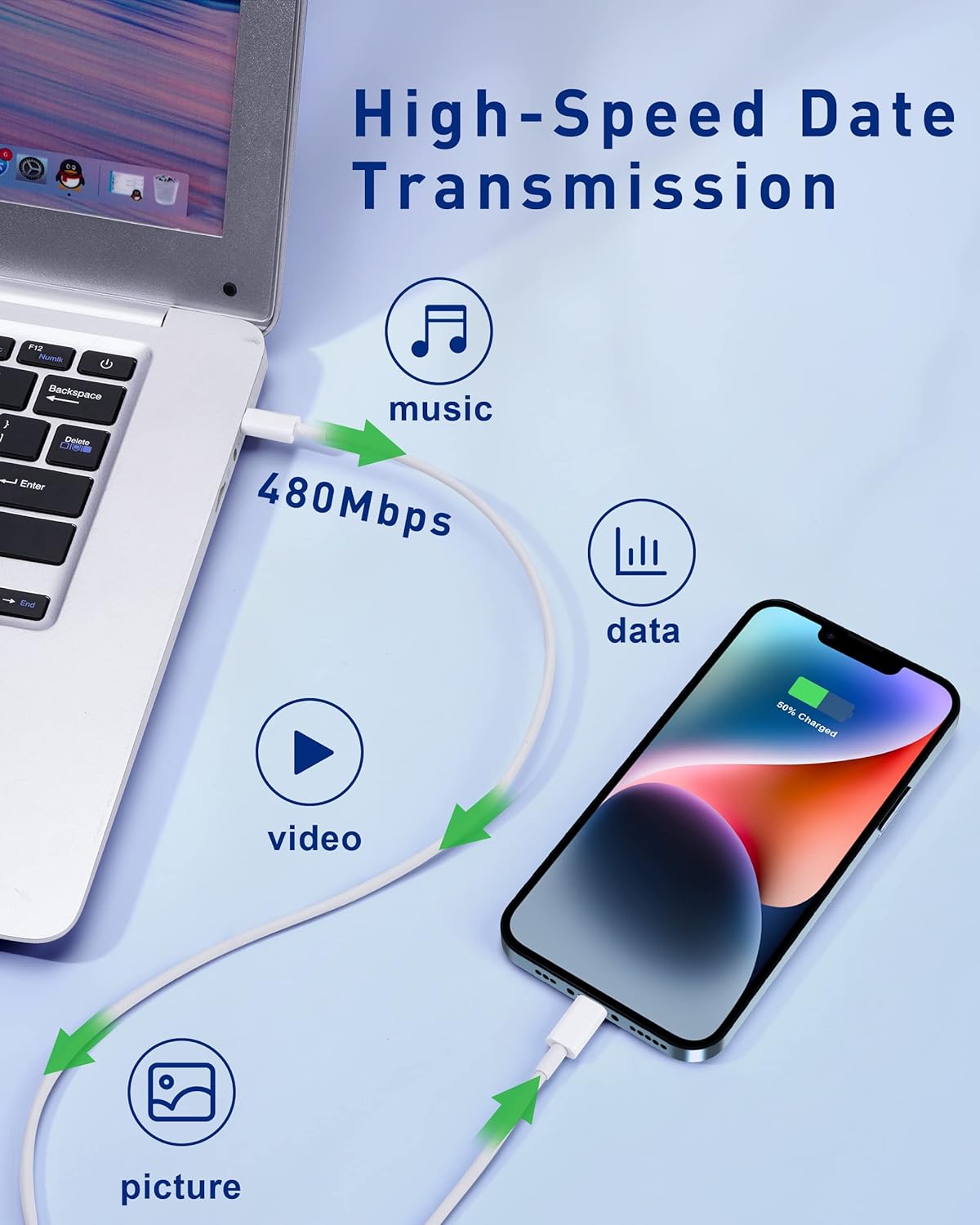 The lightning fast charging cable is designed with the latest C94 lightning end, which can safely and quickly charge your iPhone/iPad and transfer data at a speed of 480 Mbps.