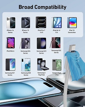 If you want to charge your iPhone 16 and connect carplay in the front of the car, choose our 3FT USB cable. Easy to use and space-saving, it will be a great travel companion for you.